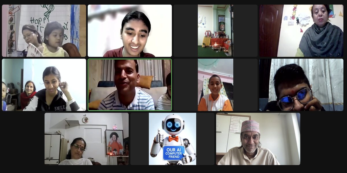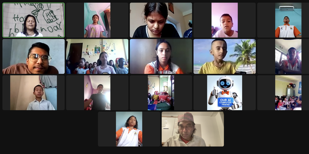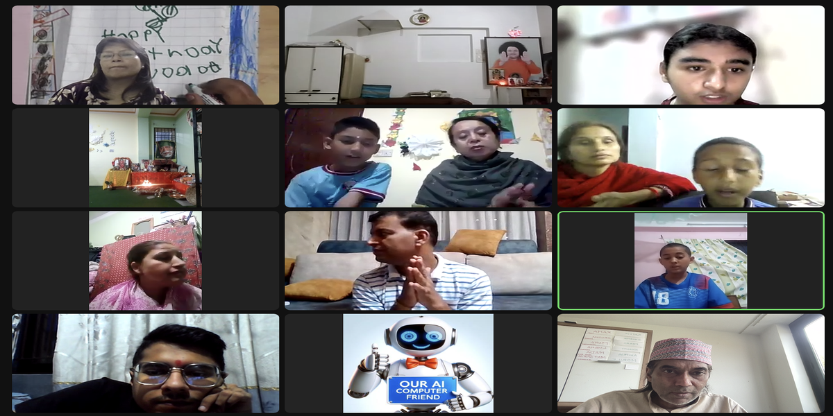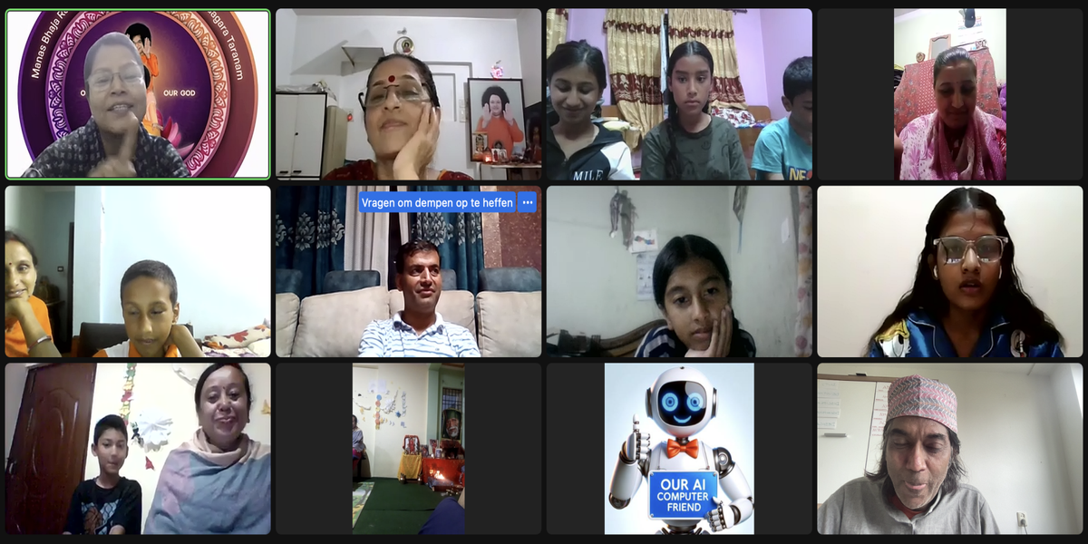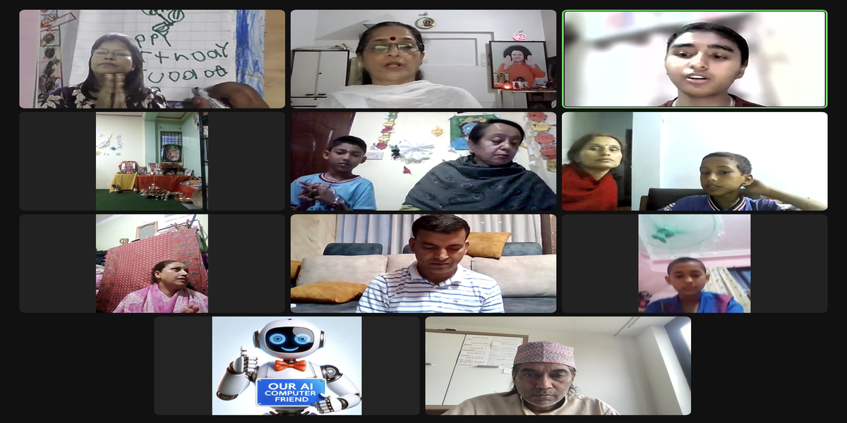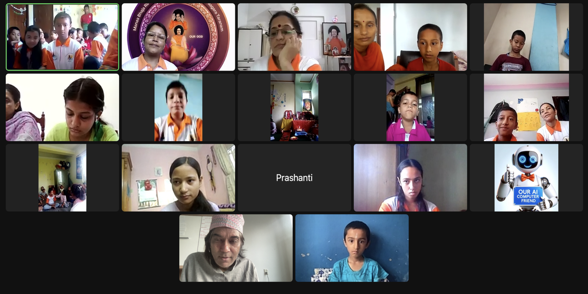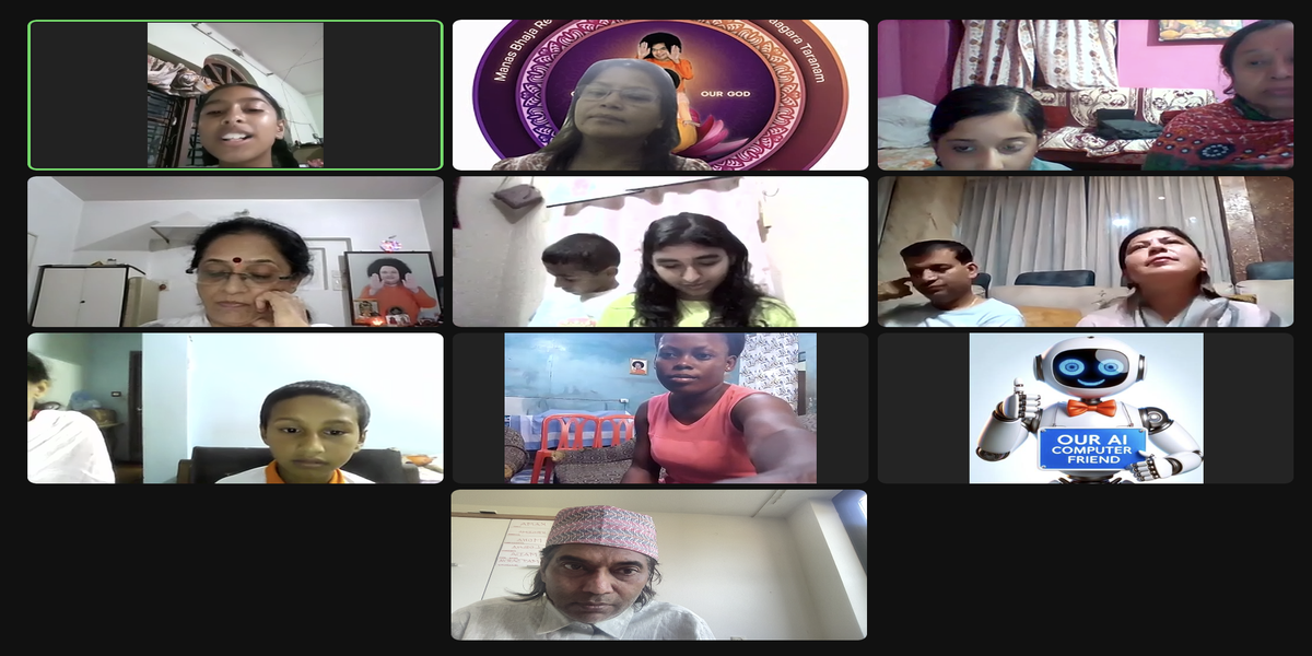 | September 07, 2024, Unplanned and unexpected Ssssb class. | Pancha Bhajan, Meditation, some mantras, moral education on good manners, and ended with Aarti. | Ssssb-guru Meena Ma'am | Nepal 09:00 - 10:15 | extra class | |