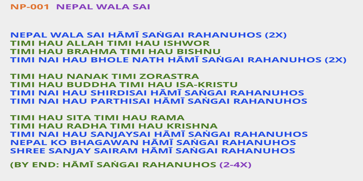 | August 03, 2024 Katunje | Program with prayer, meditation, mantra, singing, educational, cultural and spiritual activities | Rama Ma'am, Naresh Sairam | Katunje | ||