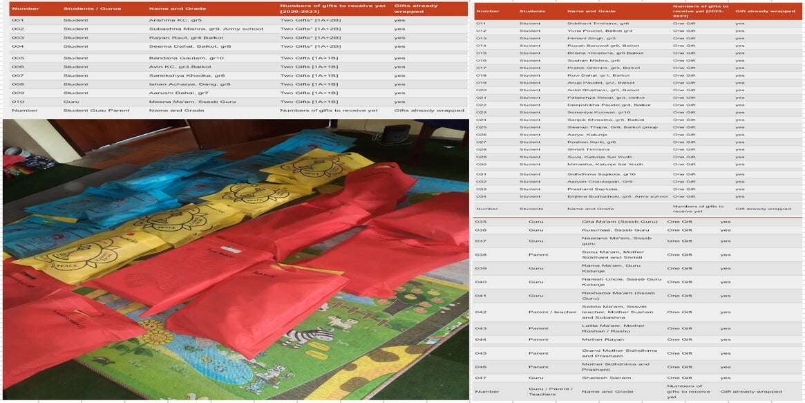 | 04-341sa August 31 [5-9+F] 2024. Karma part 03 | About new plans in class, Kusumaa in Nepal, Gift distribution. Karma, Let's find out how these examples affect our karma | Let's share our experiences and insights through words and/or creative expression, such as art, poetry, music, drama, or drawings, to inspire each other. | Ssssb-guru Daju (Sunil Marapin) Support team: Gurus and Youth team | Nepal 09:00 - 10:15, Congo 4:15-5:30, India 8:45-10:00, Holland 5:15-6:30 | |