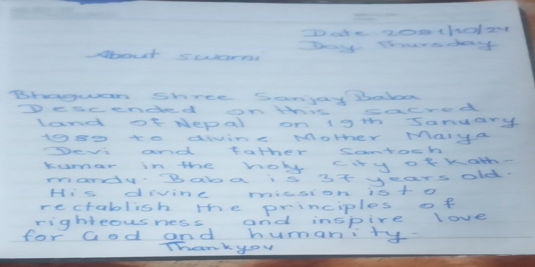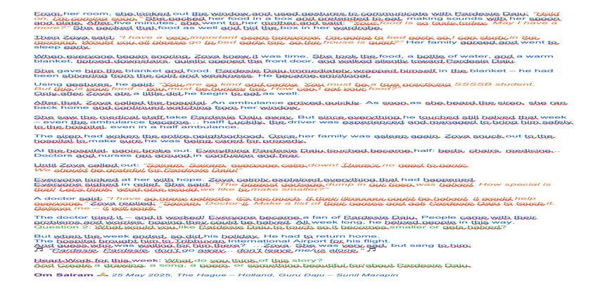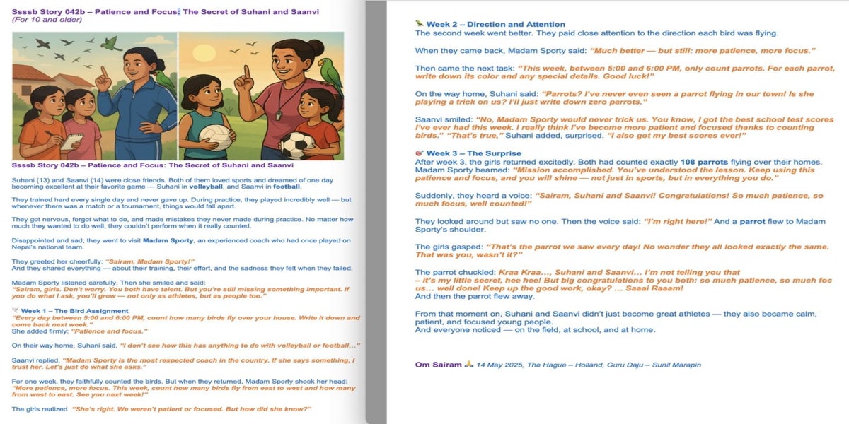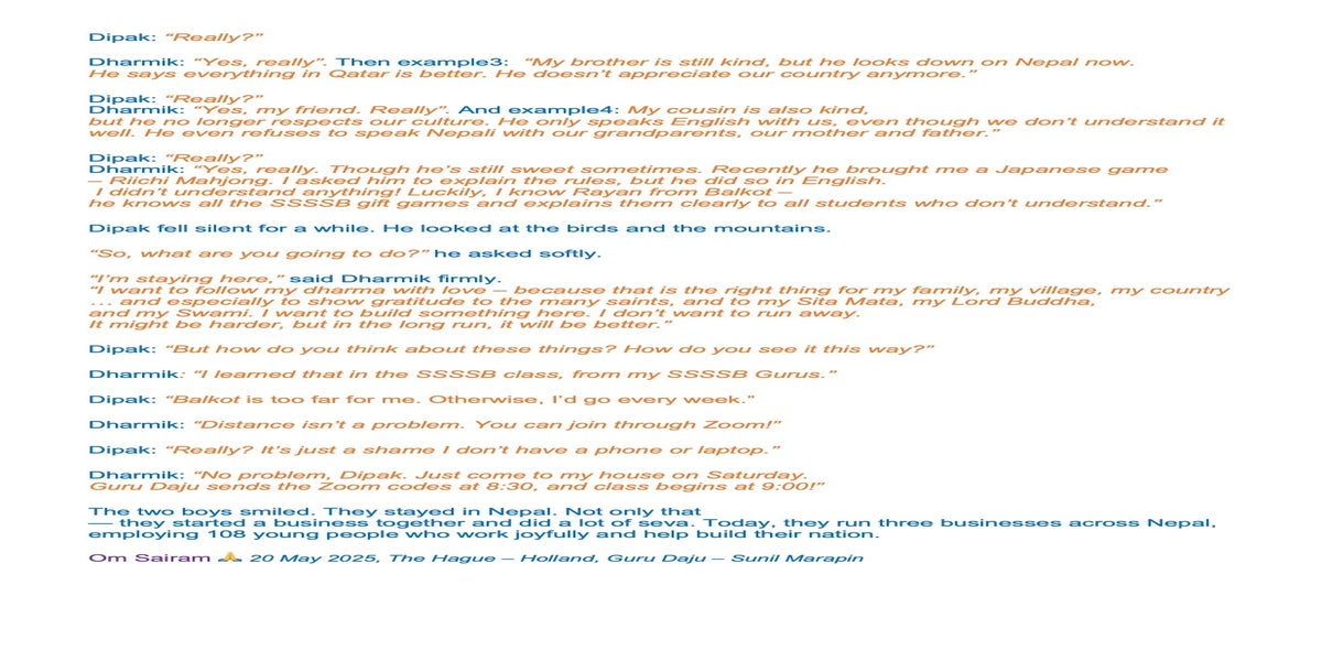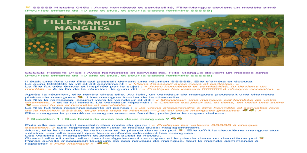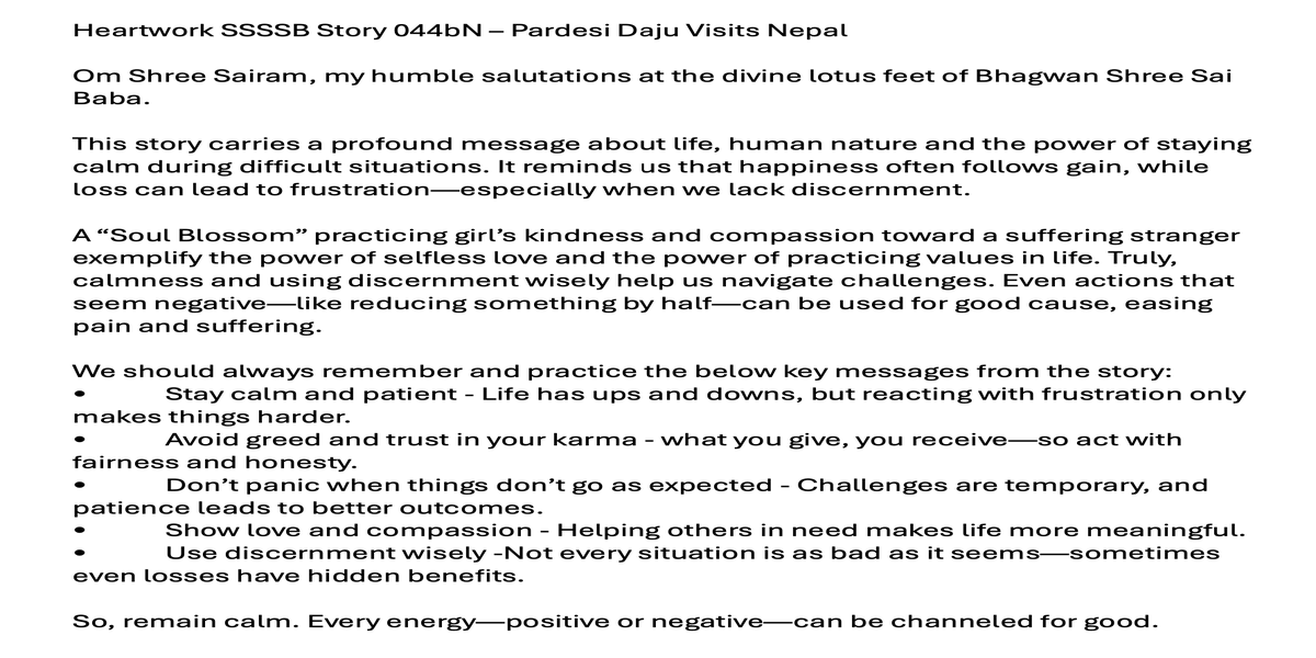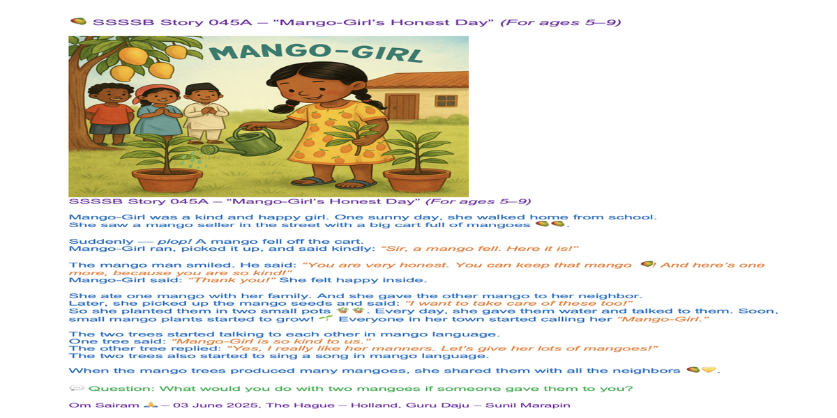 | Saturday April 05 | 429 05 April 2025, online family class. 9:00 nepal time | Story 2037a+b | Ssssb-guru Meena Ma'am, Gita Ma'am and Ssssb-guru Daju | Online Gurus team |