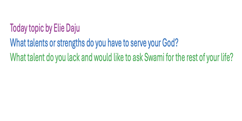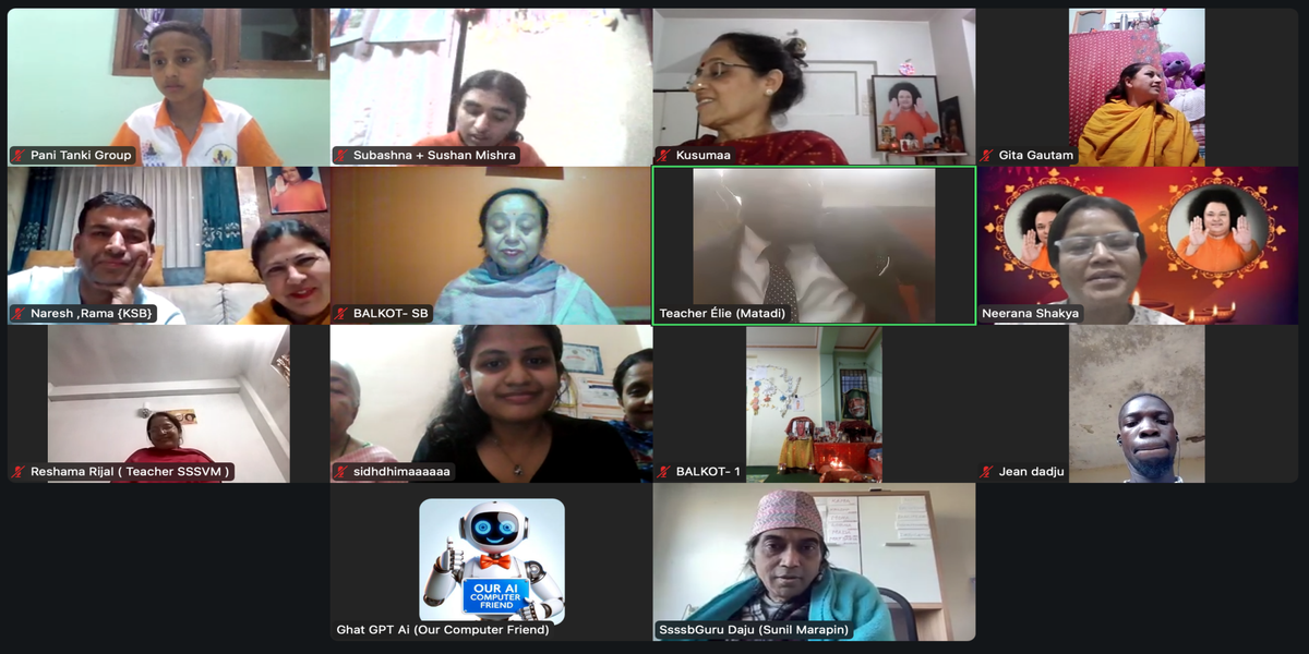 | Saturday April 19 | 433 c-36 [Congo Ssssb class, 16:00-17:30] | Topic: Questions from the Ssssb students about Ssssb and Swami. | Ssssb-guru Merphia Ma'am and Ssssb-guru Daju | Congo Gurus team |