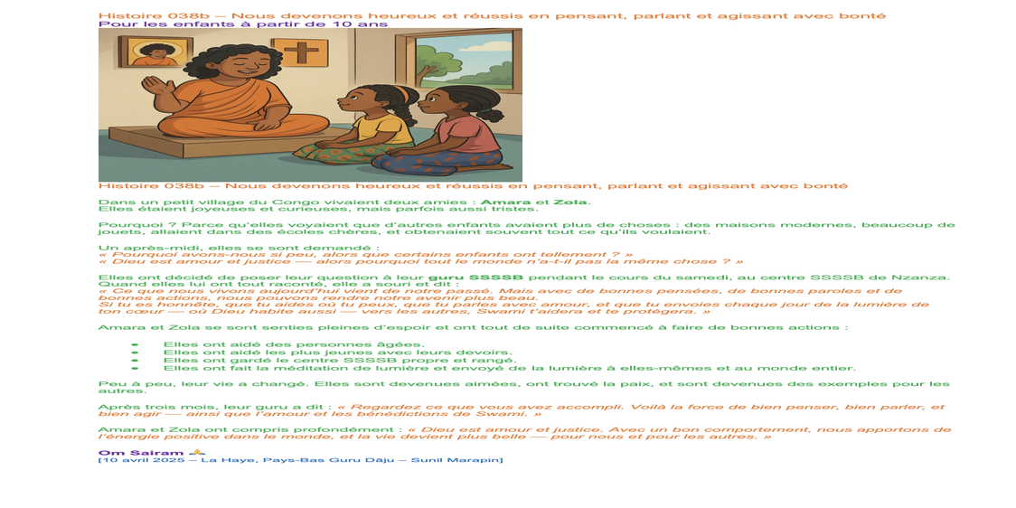 | Saturday April 12 | 432 c-35 [Congo Ssssb class, 16:00-17:30] | Topic: Story 038c – Peace, Strength and Success through Loving Actions | Ssssb-guru Merphia Ma'am and Ssssb-guru Daju | Congo Gurus team |