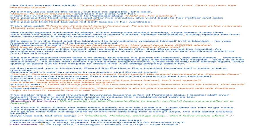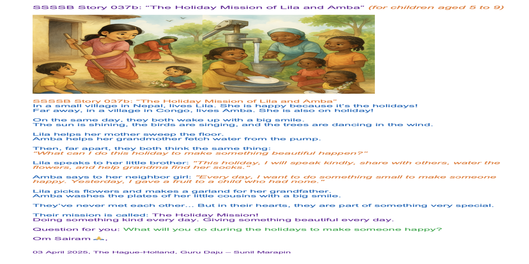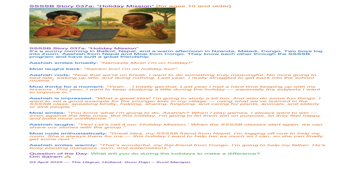 429 2025 April 05, SSSSB saturday family class: Story 2037 The Holiday Mission