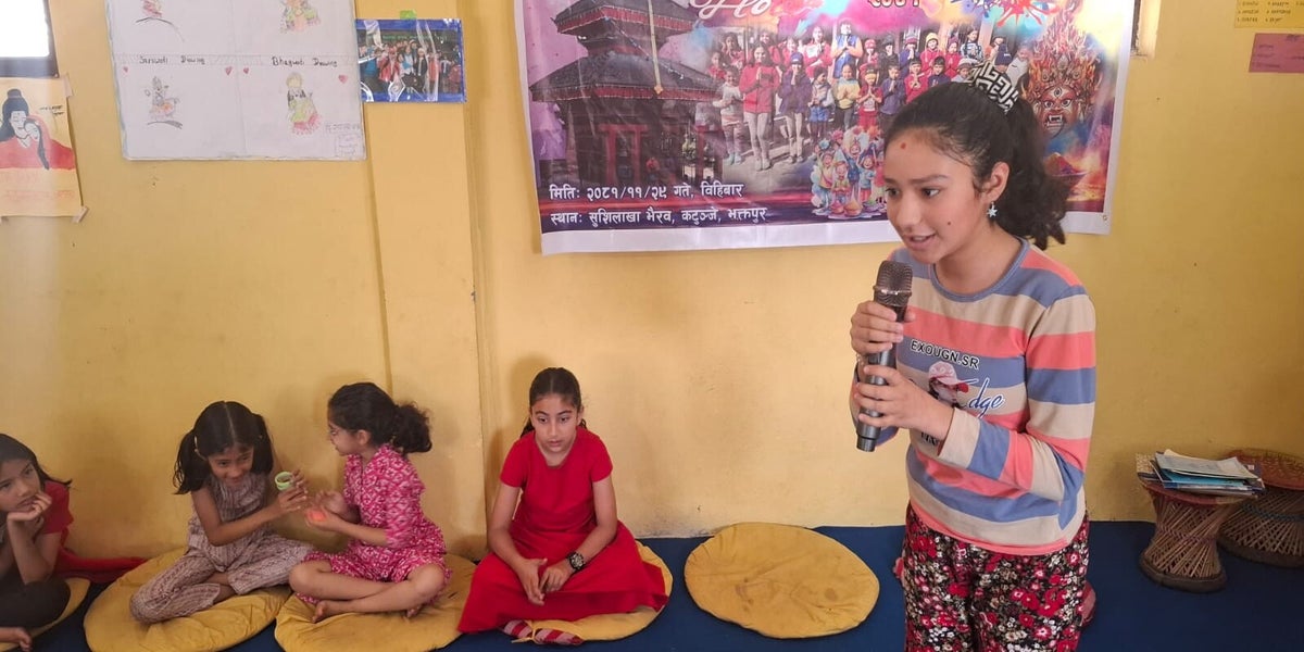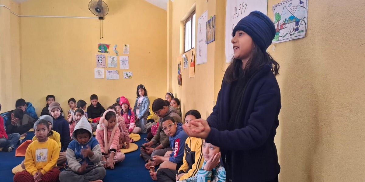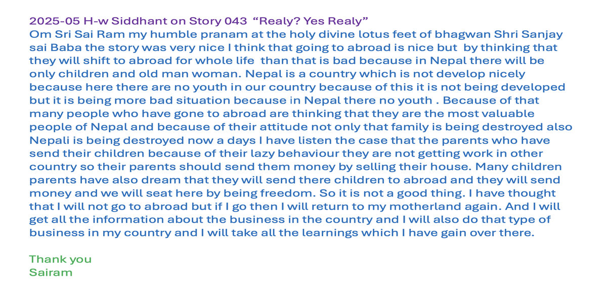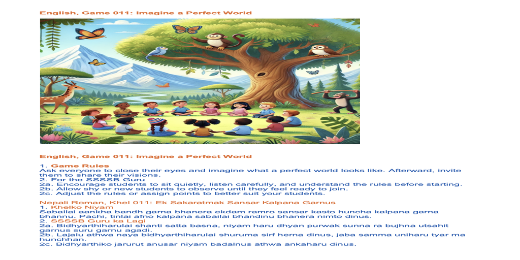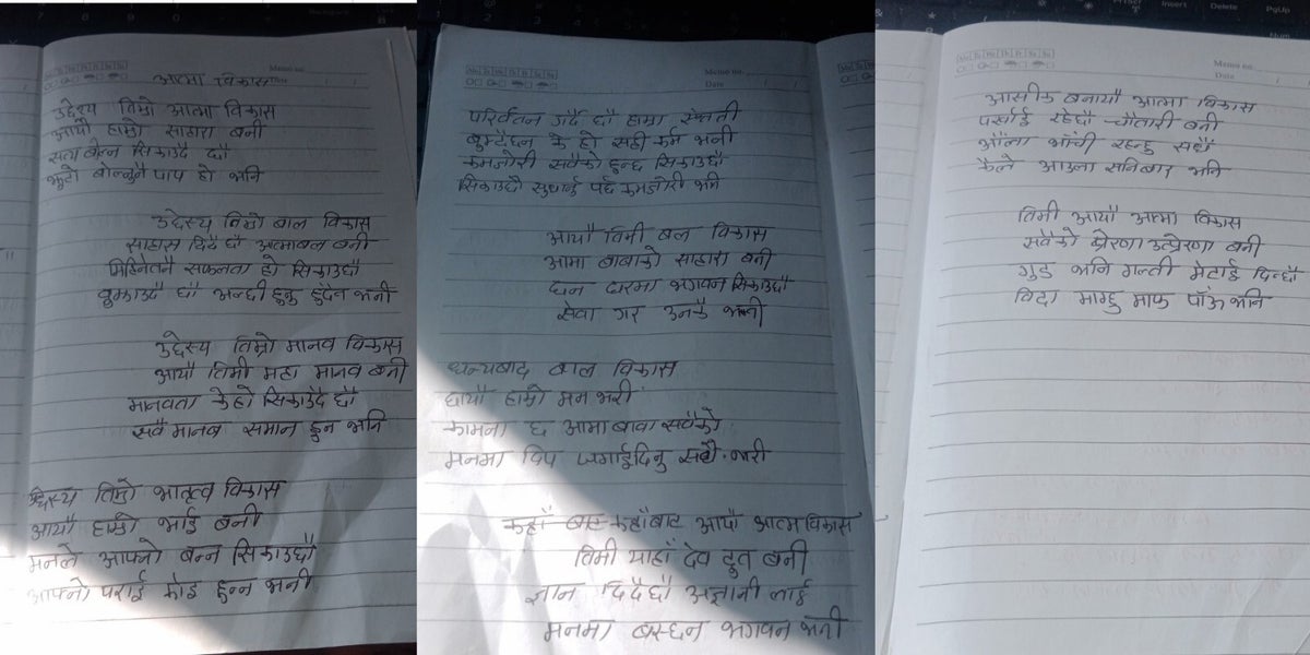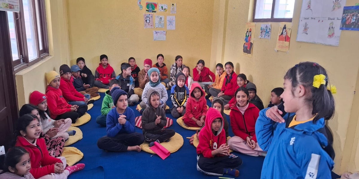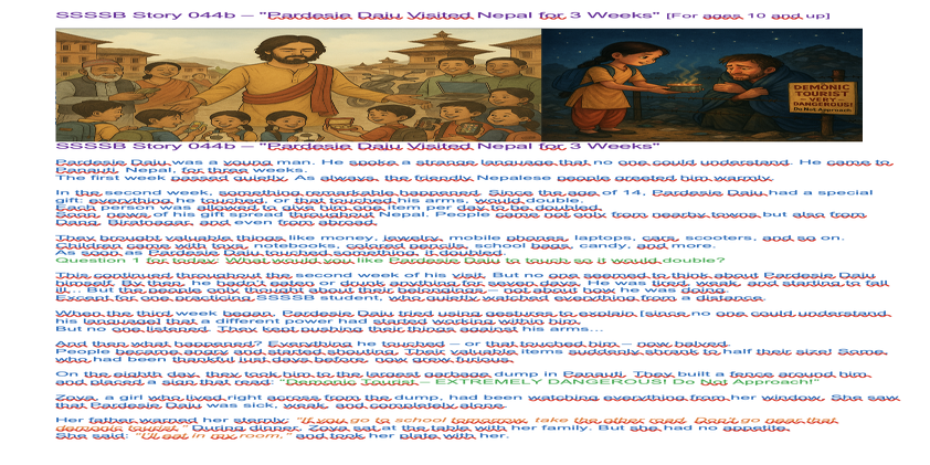 May 30, 2025 Ssssb class for Group 4+5 of SSSVM School. Story 044bN: "Pardesie Daju Visited Nepal for 3 Weeks"