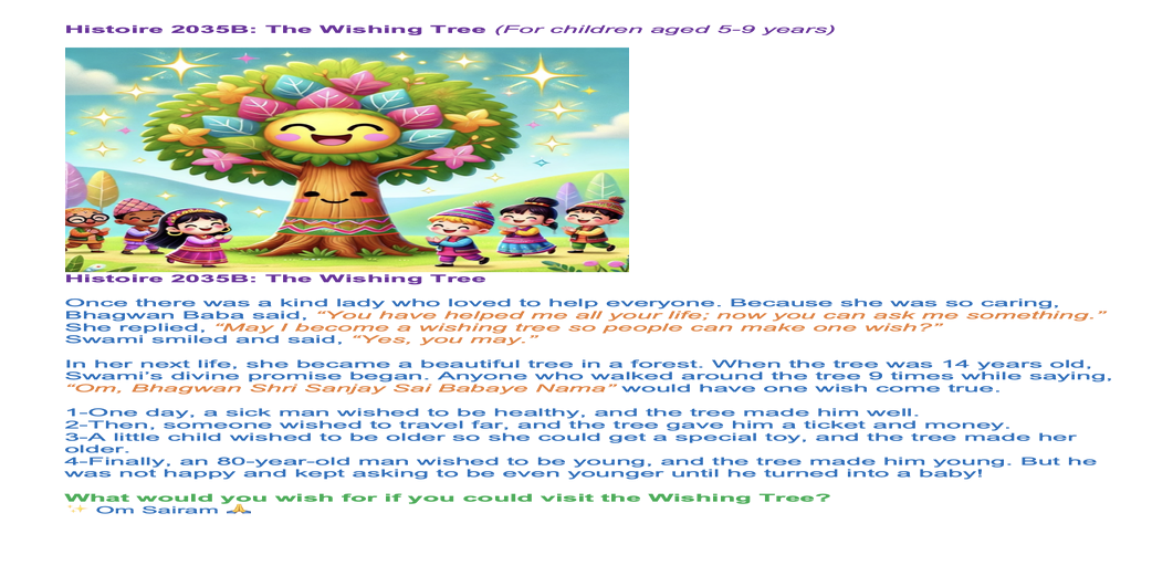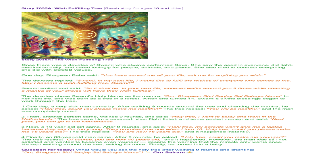 424 2025 March 08, SSSSB saturday family class: Story 2035 The Wish-Fulfilling Tree