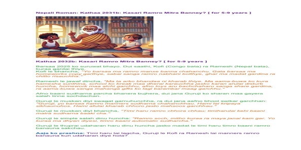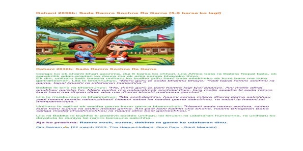 | Saturday May 03 | 437 balkot+ | Story 040a+b | Ssssb-guru Meena Ma'am, Gita Ma'am and Ssssb-guru Daju | Online Gurus team |