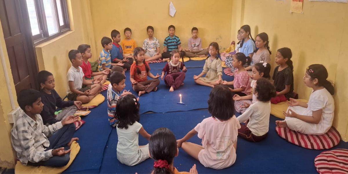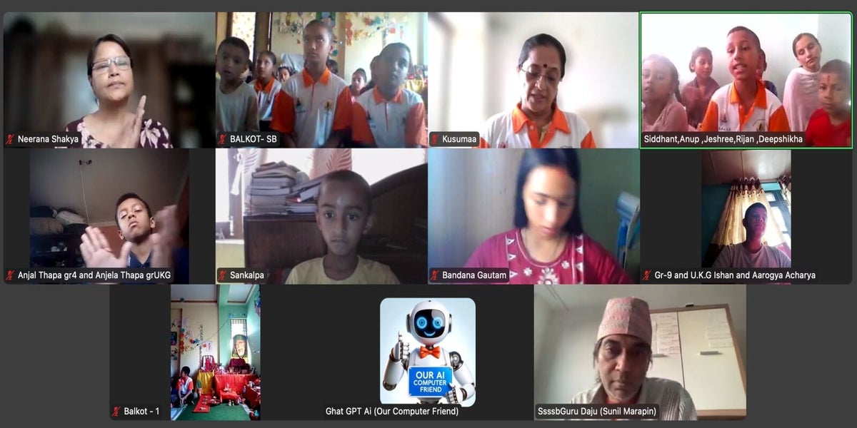 The Saturday SSSSB Class for ages 5-9 and 10 and older takes place from 9:00 to 10:15 Nepal time. Initially, participants came to Meena Ma'am's or Rayan's house to join the Saturday online class. As the number of students grew to more than 50, we decided in September 2024 to no longer conduct the program online via Zoom for everyone.