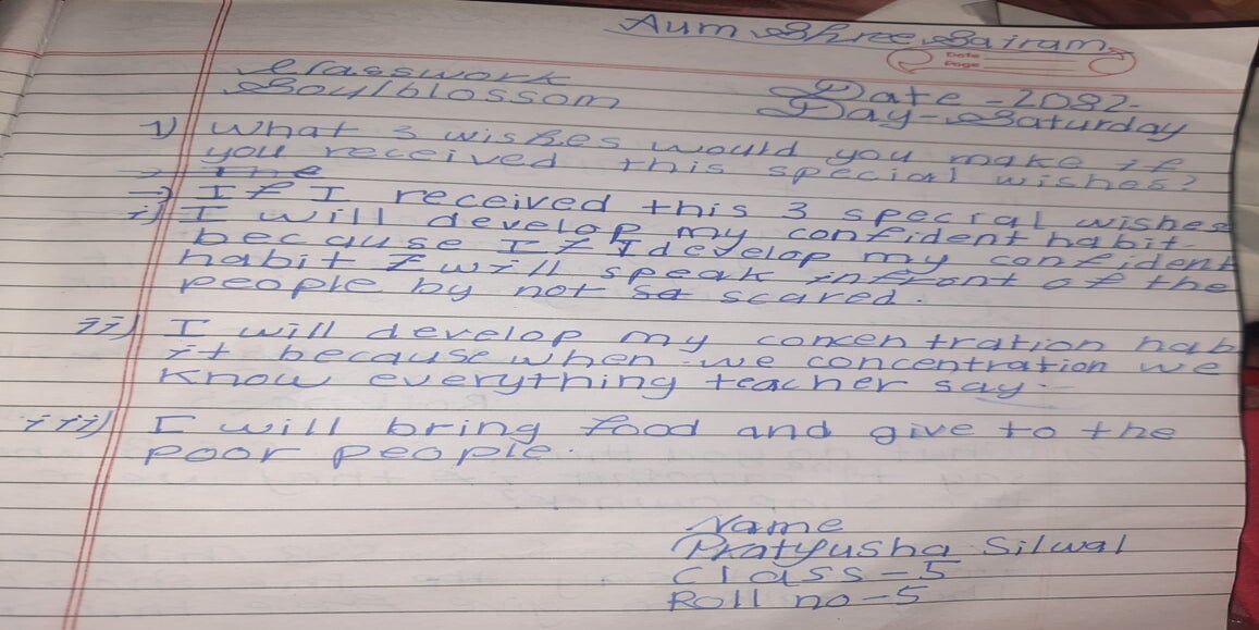 In our Soul Blossom Class, we play games, do shloka chanting , meditation , storytelling with children and carry on various seva activites through which we impart Swami’s teachings as Love all Serve All , Sharing And Caring ,Help Ever Hurt Never etc .