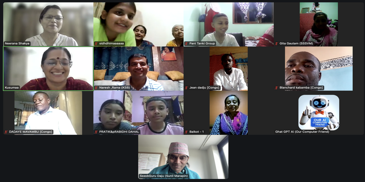 The family classes originated from the merging of all online Zoom classes from Chapter Holland, which began in 2020. Initially, we started with SSSSB gurus and participants from Nepal and the Netherlands, and now gurus and participants from India and DR Congo have also joined. The family classes take place on Saturday from 9:00-10:15 and Sunday from 18:45-20:00, both in Nepalese time. Everyone worldwide is welcome.