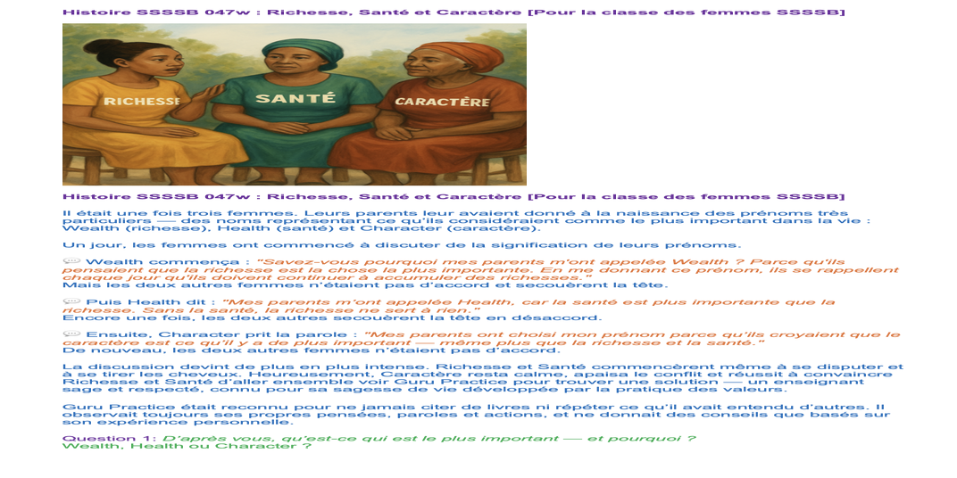 455 fam classes sat+Sun june 21+22, 2025, story 047a+b, Wealth, Health and Character