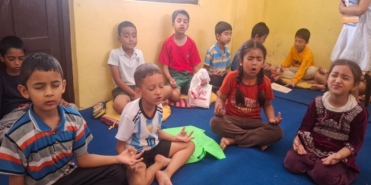 On June 1, 2024, the weekly Sanskar class was officially launched for children from Katunje. Teachers from other spiritual organizations in Katunje are also involved. Since other organizations are part of the initiative and not all children are devotees of Swami, Rama Ma'am and Naresh Sairam design the program to be as inclusive and suitable as possible.
