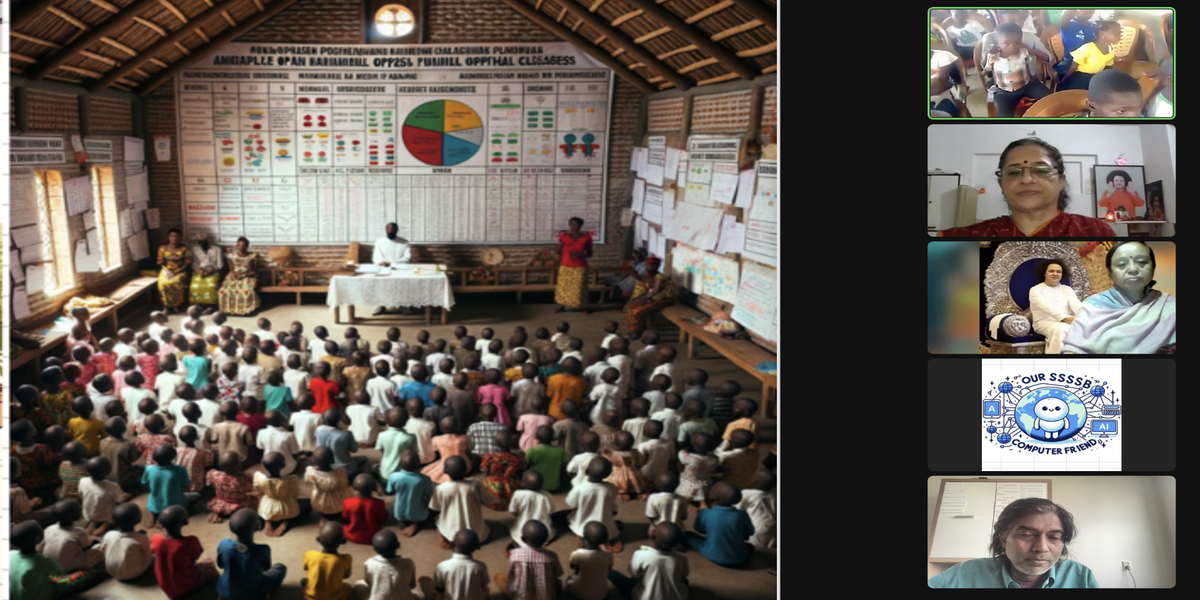 | 04-231saC006 Sept 09, 2023 | Seva Project Congo Group + Short Ssssb class | Let's share our experiences and insights through words and/or creative expression, such as art, poetry, music, drama, or drawings, to inspire each other. | Ssssb-guru Daju (Sunil Marapin). Support team: Gurus and Youth team | Seva Project Congo Ssssb children. No class only seva | Seva Project Congo Group + Short Ssssb class | 6e Congo children + youth class. |