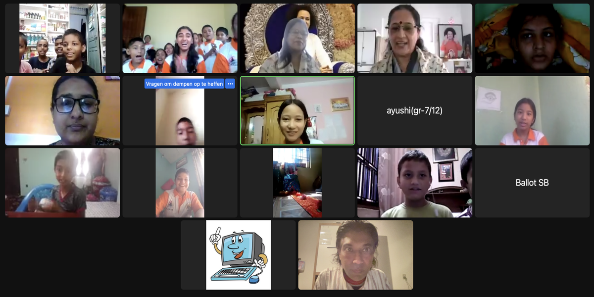 | 04-228C005 Sept 02, 2023 | Statement: "Children and young people have too little experience to set an example" | Let's share our experiences and insights through words and/or creative expression, such as art, poetry, music, drama, or drawings, to inspire each other. | Ssssb-guru Daju (Sunil Marapin). Support team: Gurus and Youth team | Congo 14:00- 16:00, India 18:30-20:30 Nepal: 18:45-20:45,Holland 15:00-17:00 | Congo children and youth class. | 5e Congo children + youth class. |