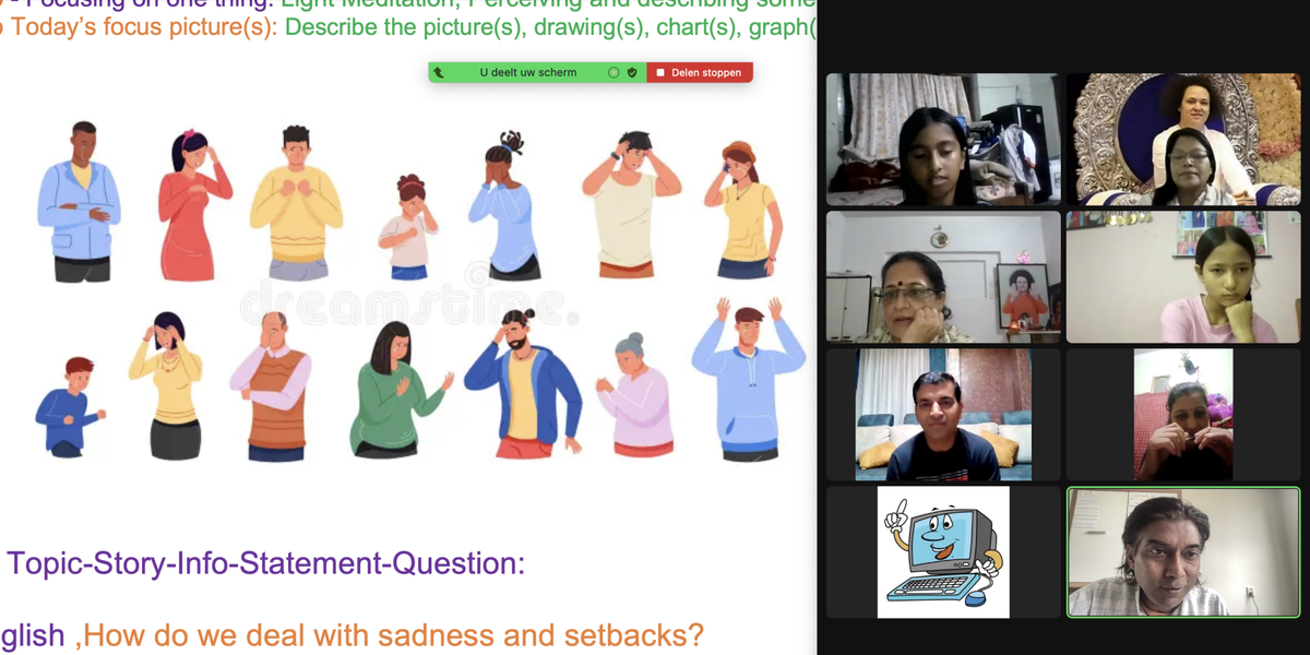 | 04-224su August 20, 2023. | How do we deal with sadness and setbacks? part 1 | Let's share our experiences and insights through words and/or creative expression, such as art, poetry, music, drama, or drawings, to inspire each other. | Ssssb-guru Daju (Sunil Marapin). Support team: Gurus and Youth team | Nepal 18:45-20:00, India 18:30-19:45, Congo: 14:00-15:15, Holland 15:00-16:15 | Sunday Family class | |