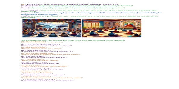 | 04-271sa febr 24 | Shall we practice speaking softly, slowly, and kindly from today? | Let's share our experiences and insights through words and/or creative expression, such as art, poetry, music, drama, or drawings, to inspire each other. | Ssssb-guru Daju (Sunil Marapin). Support team: Gurus and Youth team | Nepal 09:00 - 10:15, Congo 4:15-5:30, India 8:45-10:00, Holland 4:15-5:30 | Saturday Family class for everyone |