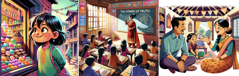 One day, Lila noticed her mother hiding money under the fruit basket. Overcome by her craving for sweets, she secretly took five rupees and bought chocolate with it. Later, when her mother needed money for groceries and noticed the shortage, she confronted Lila. Fearing the consequences, Lila lied and denied taking the money.
