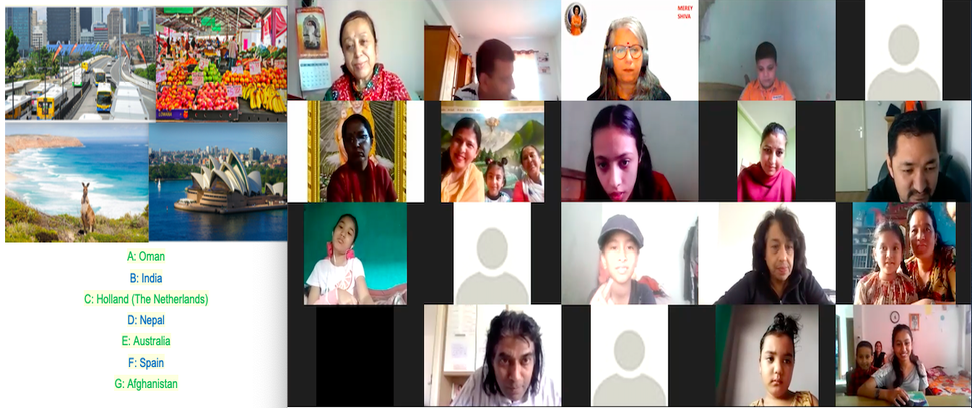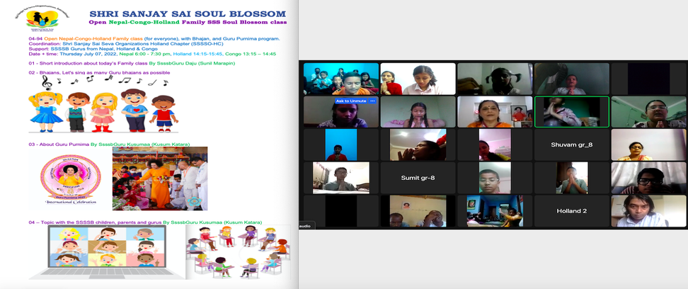 | No + Name | Bhajans, Saturday 9:00-10:15 am, Nepal time. / India 08:45-10:00 / Holland 05:15-06:15 /....Sunday Nepal 19:00-20:00 / Congo 14:15-15:15 / India 18:45-19:45 / Holland 15:15-16:15 | ||